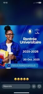 Le Ministère de l’Enseignement supérieur, de la Recherche scientifique et de l’Innovation a fixé au 20 octobre 2025 la date officielle de la rentrée universitaire sur toute l’étendue du territoire national.